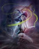 Mad scientist with machines, switches, Chemistry set, etc. A Dr. Frankenstein story illistration.
